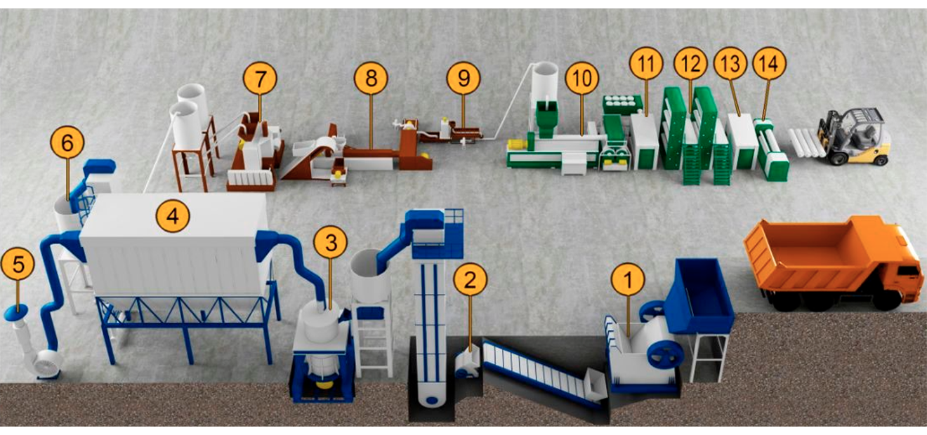 - Осадження кам'яного борошна в фільтрі та подача матеріалу системою шнеків транспортерів на силос накопичувач.